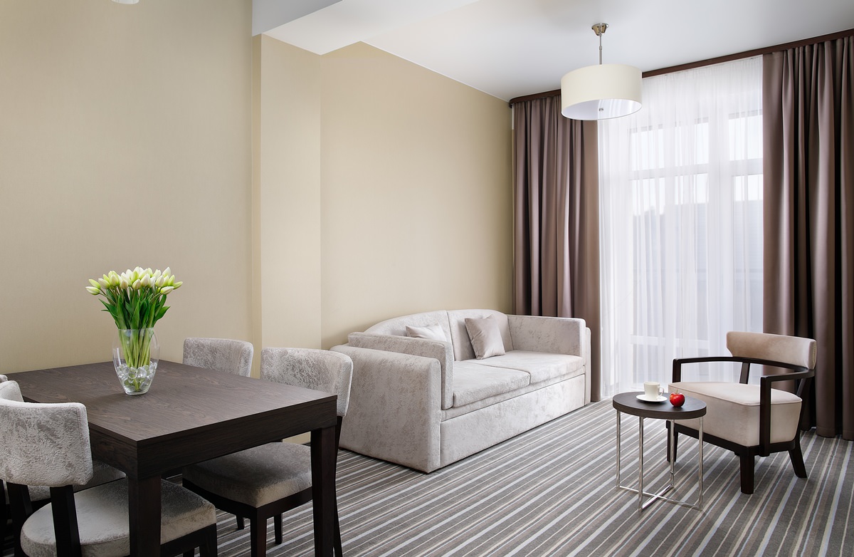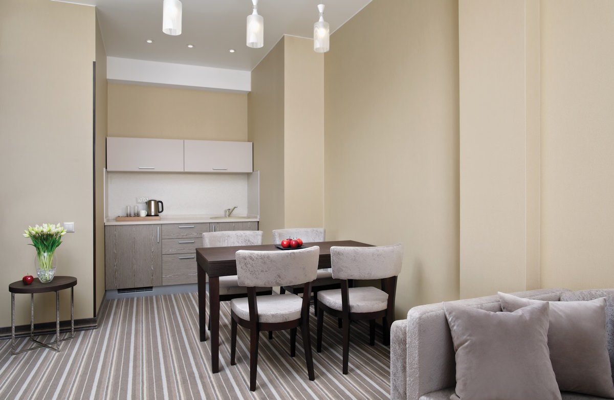 Номер с отдельной спальней, кухней и гостиной обладает домашним уютом и высоким уровнем комфорта. Со вкусом подобранная мебель сделает ваше проживание здесь приятным.