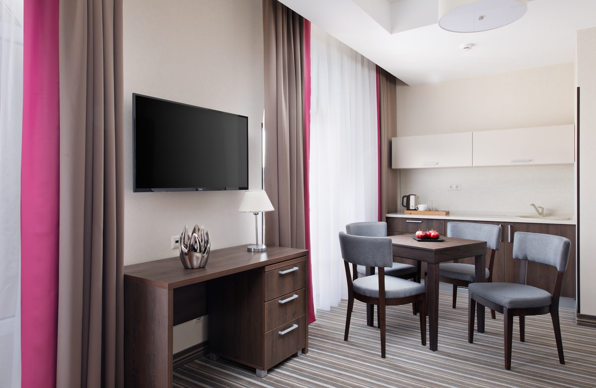 Проживая в студии, вы можете пользоваться Wi-Fi и услугой room-service (заказ еды в номер).